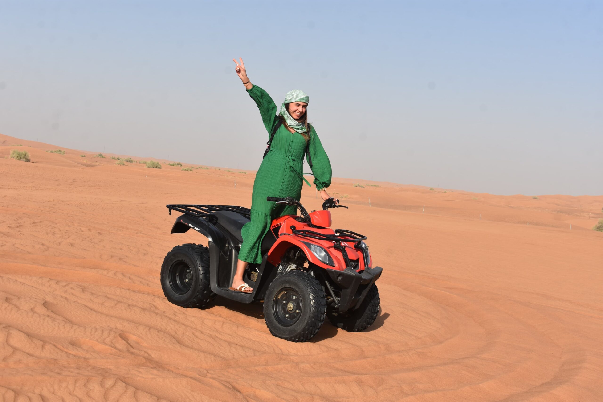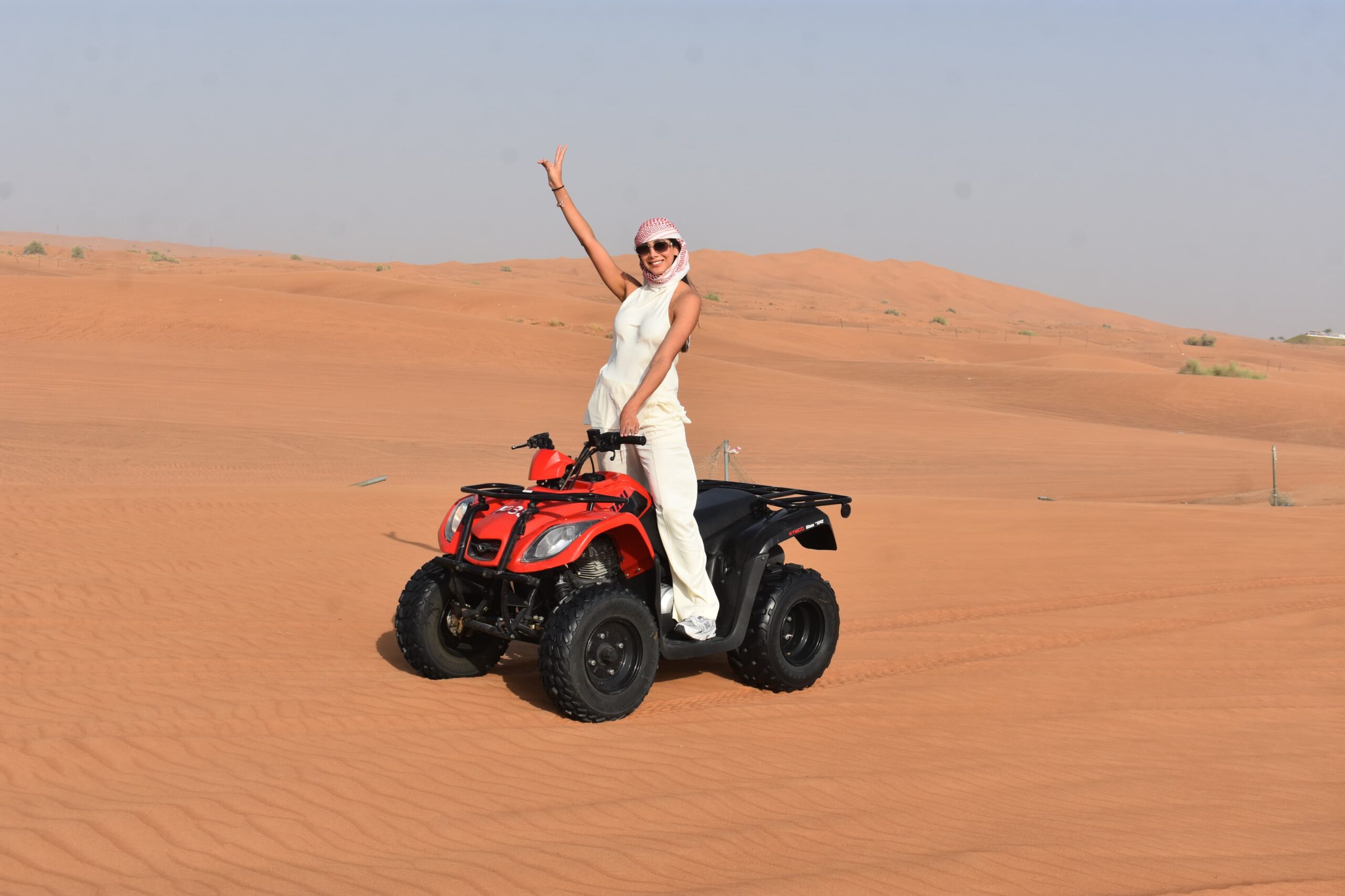 Experience a smooth and enjoyable two-seater quad bike ride in Dubai with professional guidance, premium facilities, and unforgettable desert scenery.
